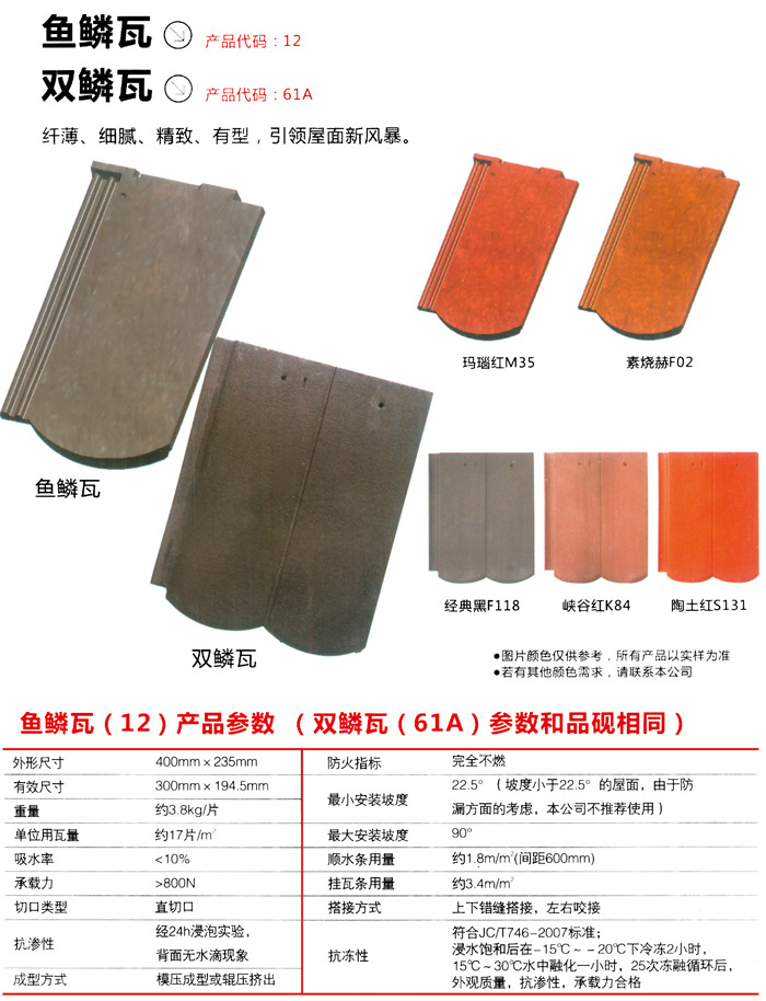 中低檔普及型水泥瓦根據(jù)輥壓成形方法生產(chǎn)制造,高檔商品根據(jù)髙壓經(jīng)高品質(zhì)磨具壓濾機(jī)而成,產(chǎn)品的密度大、抗壓強(qiáng)度高、防水防雨抗冷特性好,表面整平、規(guī)格精確,水泥瓦既適用一般自建房,也適用別墅洋房及多層建筑的防水隔熱,是社會(huì)主義社會(huì)新農(nóng)村規(guī)劃和大城市住宅小區(qū)及高端花園洋房獨(dú)棟別墅工程項(xiàng)目的新挑選。